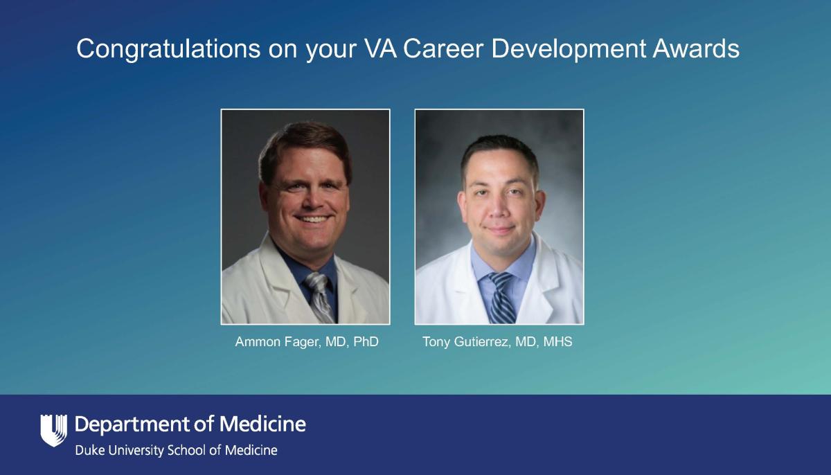 Two faculty in the Department of Medicine have received Career Development Awards from the U.S. Department of Veterans Affairs.