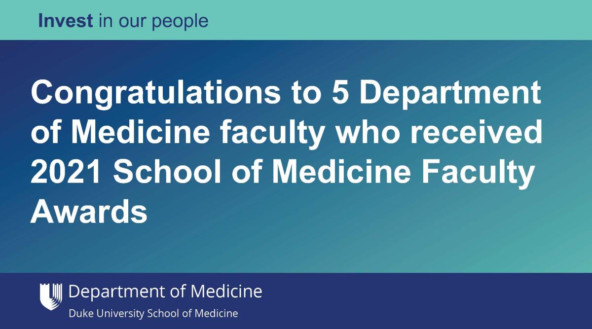 We are proud to announce the following Department of Medicine faculty who are being recognized with awards given annually by the School of Medicine.