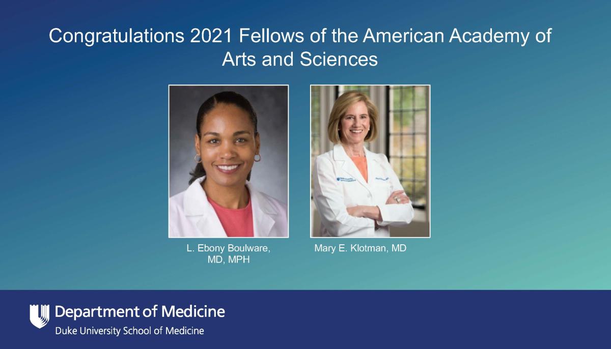 Four senior faculty members at Duke including two faculty members from the Department of Medicine have been named Fellows of the American Academy of Arts and Sciences (AAAS).