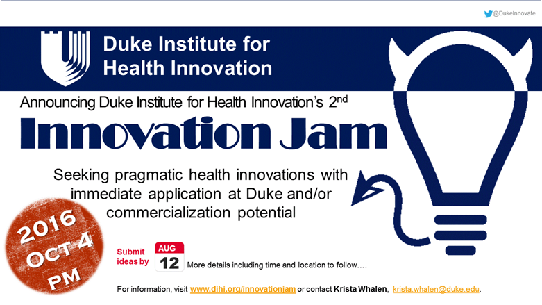 Don't forget: Duke Institute for Health Innovation will hold its second Innovation Jam on Oct. 4, 2016.